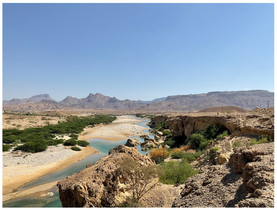 Having observed the marked spatial differences in water deficit (Figure 8), we analyzed their trends across three main agricultural zones, i.e., the Red Sea coast, the Highlands, and the Arabian Sea coast. The results indicate that with a mean annual deficit of 184 mm and a range of 78 to 272 mm, the Arabian Sea coast is the most water-stressed agricultural area (Figure 10). On the other hand, while there are interannual differences between the Red Sea coast and the Highlands, there is nearly no difference in the mean annual water deficit between the two regions. The observed upward trends without abrupt changes (see Figure 6) show that Yemen’s water resources situation is direr than was earlier documented. For instance, earlier studies recognized Wadi Hajr in Hadramaut Governorate as the only truly perennial flow in the country and that influx exceeded outflux across parts of the Wadi [62]. However, our findings challenge this conventional understanding and show that, as in other parts of the country, Wadi Hajr is severely water-stressed and is no longer perennial (Figure 10 and Figure 11). Both data analysis and site visits show that parts of the Wadi are seasonal. This finding has not been previously described.