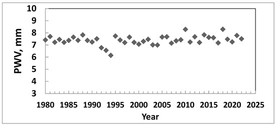 The long-term trend of PWV over the period of 42 years at the Terskol Observatory is presented in Figure 5.