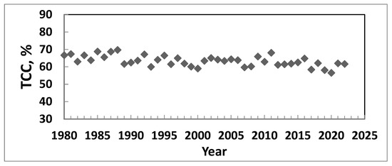 Figure 8 presents the long-term trend of TCC for the considered period of 42 years at the Terskol Observatory.
