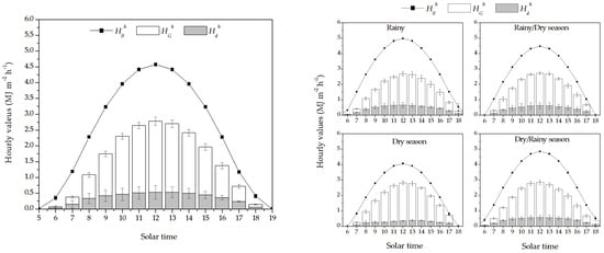 - Gomes, L.R.T.C.; Marques Filho, E.P.; Pepe, I.M.; Mascarenhas, B.S.; Oliveira, A.P.; França, J.R. Solar Radiation Components on a Horizontal Surface in a Tropical Coastal City of Salvador. Energies 2022, 15, 1058. [Google Scholar] [CrossRef]