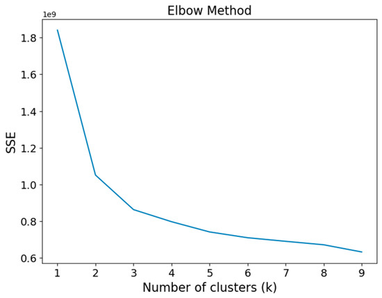 In the K-means algorithm, K refers to the number of clusters to be formed, also known as the predetermined number of clusters. The appropriate value of K is crucial for the effectiveness of the K-means algorithm and the quality of clustering results. A common method of determining the value of K is experimentation and adjustment based on data characteristics and domain knowledge. There are also quantitative methods such as the elbow method, silhouette coefficient, and within-cluster sum of squares (WCSS) to assist in this determination. The elbow method involves plotting the curve of the sum of squared errors (SSE) of clusters under different K values and selecting the K value at the “elbow” point where the curve begins to level off. The silhouette coefficient, on the other hand, evaluates the compactness and separation of clustering results based on similarity and dissimilarity among samples as shown as Figure 6.