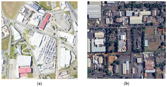 The choice of the scenes, shown in Figure 3, is justified by their belonging to an industrial LCZ, called LCZ 8, similar to the two cities addressed, according to the classification principles of Stewart and Oke [10] and Demuzere et al. [35].