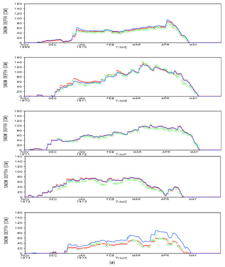 - Lynch-Stieglitz, M. The development and validation of a simple snow model for GISS GCM. J. Clim. 1994, 7, 1842–1855. [Google Scholar] [CrossRef]
