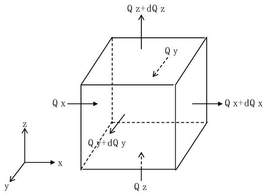 Assuming that the migration rate of water in the waste is much lower than that of the landfill gas, and that the action time of leachate is very long, the migration of leachate can be ignored when simulating gas migration. To establish the gas migration control equation in the waste, the following assumptions were made, as seen in Figure 1: