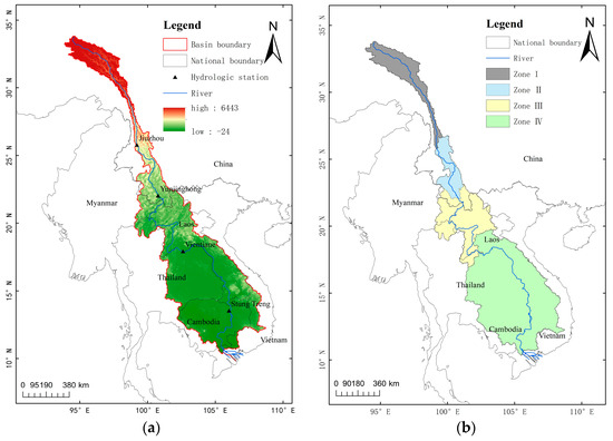 Geographical location and regional division of Lancang-Mekong River Basin. (a) Geographical location, (b) regional division.