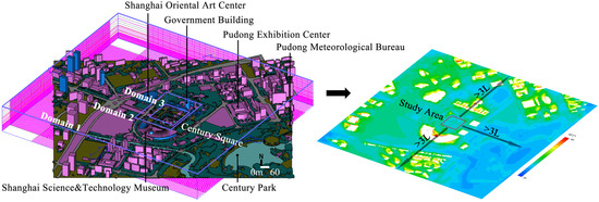 - A total of 800 m to the east of it is the national basic station of the Pudong Meteorological Bureau, and the synchronized observation data are suitable as the boundary condition for simulation [48];