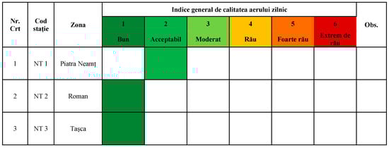 Bulletin of air quality in Neamț county—general air quality index for 23 August 2022 (1—good, 2—acceptable, 3—moderate, 4—bad, 5—very bad, 6—extremely bad).