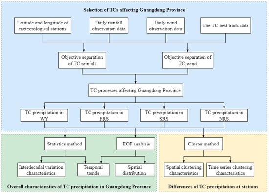 Flowchart of the analysis of spatiotemporal characteristics of TC precipitation in Guangdong Province.