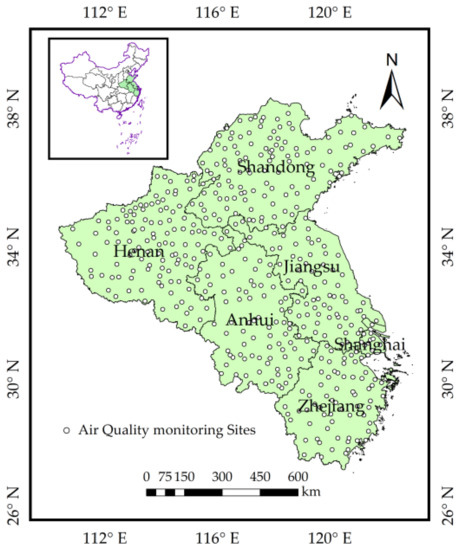 Figure 1. Mid-Eastern China and its monitoring site distribution.