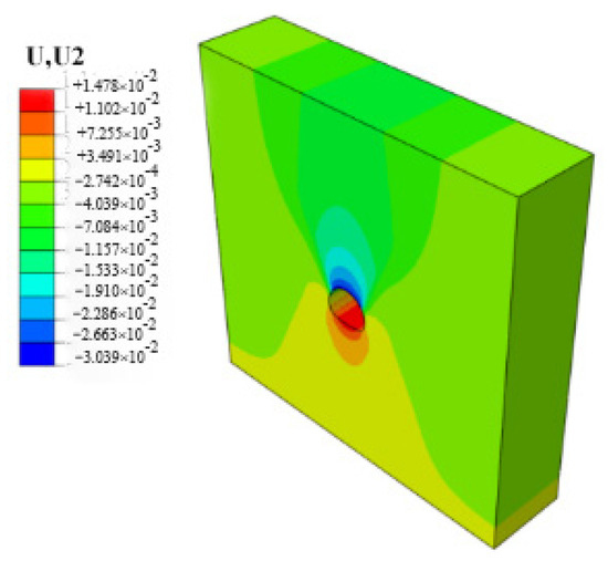 Figure 14 displays the vertical displacement cloud of the rock surrounding the tunnel cavern, while Figure 15 presents the vertical displacement curve of the inverted arch.