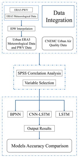 The process of building PM2.5 concentration prediction models based on different algorithms is represented in Figure 5.