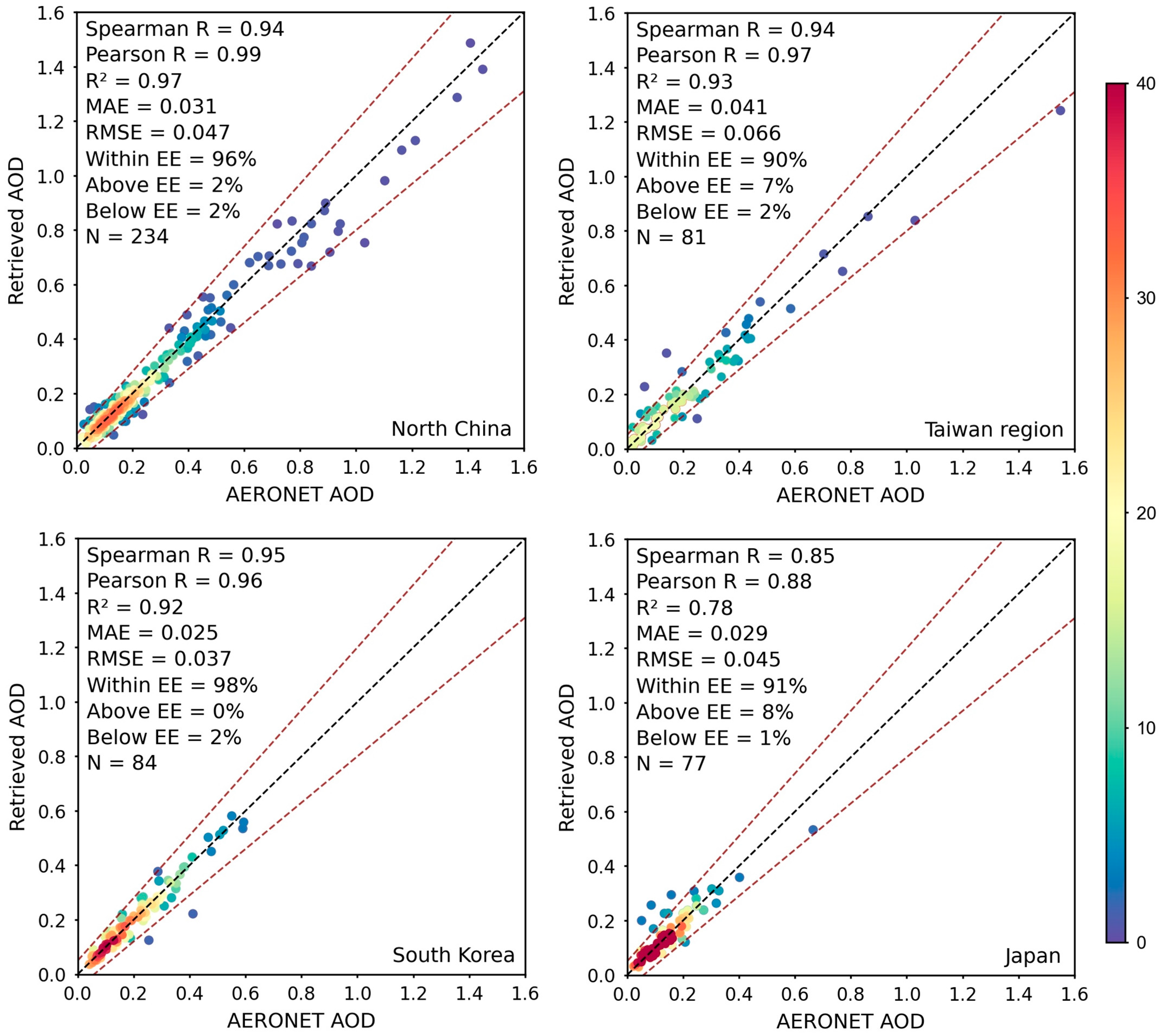 | Seasons | Matched Number | Spearman R | Pearson R | R2 | MAE | RMSE | within EE |