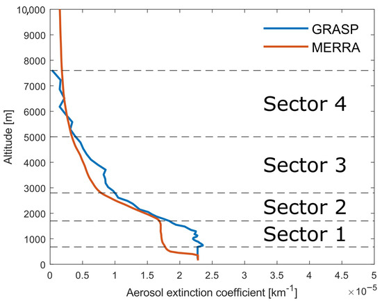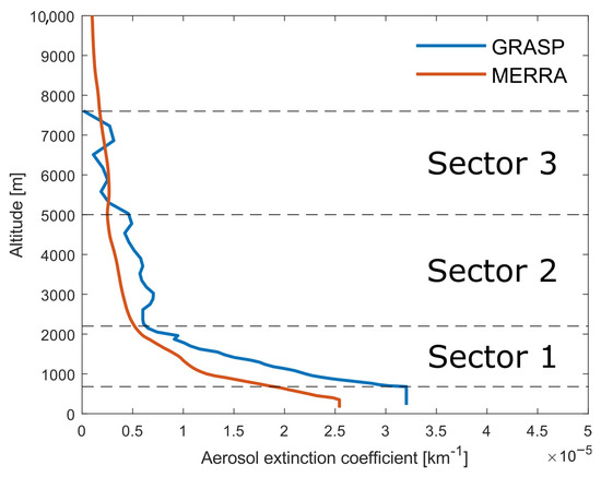 The high correlation coefficient between AOT values reproduced by GRASP and MERRA2 (R = 0.84), combined with a significant number of outliers in both distributions, necessitates further analysis of the vertical aerosol structure for a better understanding of the correspondence between the results yielded by the two approaches. To this end, we performed a statistical analysis of vertical profiles of aerosol extinction (α-profile) given by both GRASP and MERRA2 to quantify the differences at various altitudes. We analyzed the obtained profiles and identified altitude regions (hereafter called sectors) where we observed overall different behavior of the profile values and derivatives with height. Moreover, the vertical structure varies greatly with the seasons, predominantly within and immediately above the PBL. Thus, we divide our further analysis into warm (April–September) and cold (October–March) parts of the year.