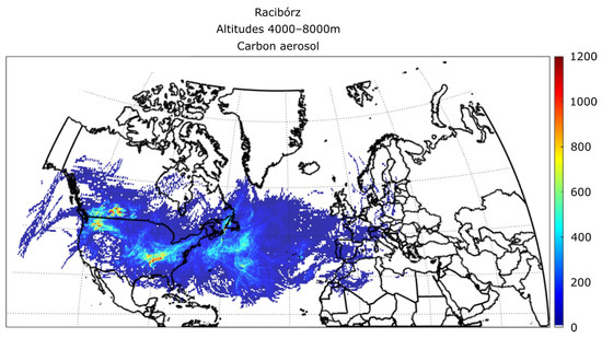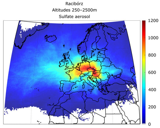 Sea salt aerosols are produced predominantly over large bodies of water during high-wind conditions; thus, we expect the Baltic, North Sea, and the greater Atlantic to be the primary sources for Racibórz. While the two latter are clearly visible in the result of the analysis (Figure 12), the lack of sources over the Baltic is puzzling. One possible explanation is that the overall domination of western advection over central Europe makes it unlikely for aim masses to travel approximately 1000 km south from above the Baltic.