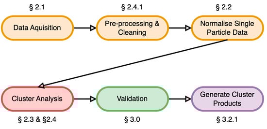 Flowchart illustrating the steps to generate cluster products from single particle data. §: Refers to the corresponding section of the paper. Adapted from Crawford et al. (2015) [].