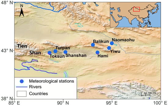 Location map of meteorological stations in eastern Xinjiang for this study.