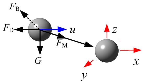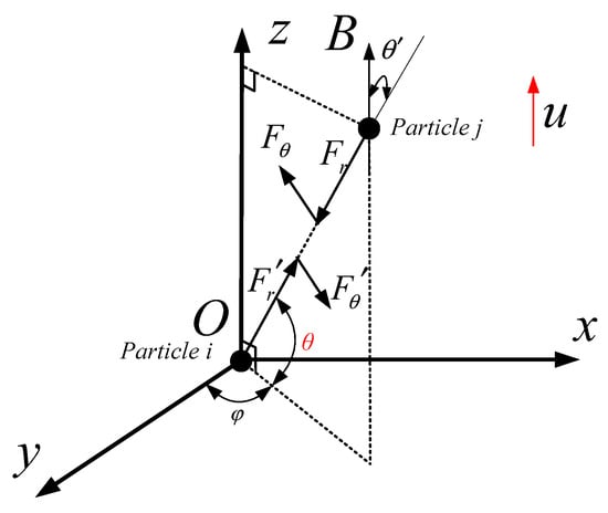 When the direction of the uniform magnetic field and inlet particle are parallel along the Z axis, particles attract each other due to the magnetic attraction at , and particles repel each other due to the magnetic repulsion at . The radial and tangential components of the magnetic dipole force under the Cartesian coordinate system are expressed as follows: