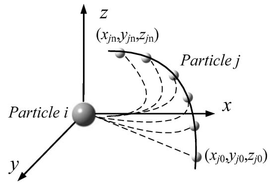Figure 5 shows the motion trajectory of particle relative to core particle in three-dimensional space from different initial positions in space, and all relative initial positions where particle can collide with core particle in unit time are determined. In this case, such initial position points ((xj0, yj0, zj0), (xj1, yj1, zj1)…(xjn, yjn, zjn)) constitute an effective collision scope in the three-dimensional space, and its volume is the coagulation coefficient between particles and .