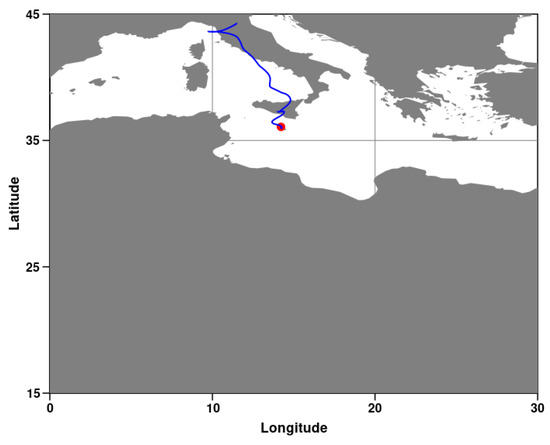 Horizontal transfers, which are much more common, can influence the air quality in the area. To acquire a better insight, in every year the days with the highest values of hourly ozone volume fractions were chosen for the trajectories of horizontal transfer analyses. As can be seen from Figure 10 and Figure S4, in almost all cases the air masses came from the north, most commonly over Sicily. Also, since most of the maximum ozone concentrations were measured during the summer, the weather was sunny and warm. This is in accordance with the wind rose, which also shows that most winds are from the northwesterly direction. Since those areas are often highly polluted with anthropogenic and natural sources (Mount Etna), it can be safely concluded that horizontal air transfers do indeed have a negative impact on the air quality in the area. It is worth mentioning that in some cases there is an observable horizontal transfer from north Africa as well. It is not uncommon that such air masses bring Saharan sand and warmth when they occur. Such occurrences influence particulate matter concentrations much more than ozone concentrations.