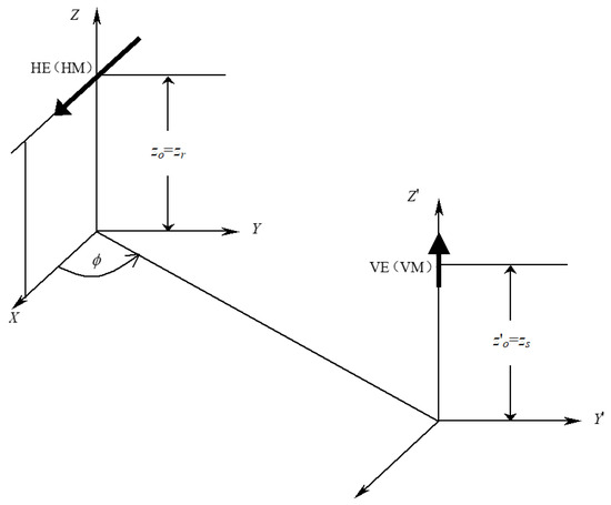 It is assumed that there is a VED in the position of and there is a horizontal electric dipole in the position of , and its direction parallels the x direction in Figure 1. The voltage in the x direction in the position of z0 induced by the VED in the position of zs can be expressed as follows: