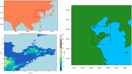 With the continuous advancement of computer technology, many meteorologists are utilizing numerical models to simulate wind energy density [1,2,3,4]. Among these models, the Weather Research and Forecasting Model (WRF), recognized as one of the most advanced and widely used numerical models for weather forecasting and climate simulation internationally, has found extensive application in meteorological research and forecasting worldwide, emerging as one of the commonly employed physics models for wind speed prediction. Wang et al. [5] investigated the short-term forecast performance of the WRF model for summer and winter wind speeds in the Rucheng area of Jiangsu, located at the intersection of the East Asian monsoon region and the coastal zone. The study revealed that the WRF model can provide relatively accurate wind speed forecasts for the Rucheng station during winter. A further analysis at larger scales also indicated varying levels of accuracy in predictions for different regions, with higher precision in coastal areas, particularly in the coastal zone and the sea–land interface. Forecasts in flat inland regions were also relatively reliable, but the model’s performance could have been more favorable in mountainous areas.
