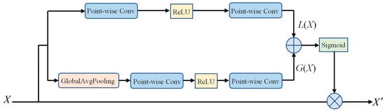By performing element-wise addition to fuse the local and global features and then obtaining the attention weights by the Sigmoid function, the entire Multi-Scale Channel Attention Module can be represented as follows: