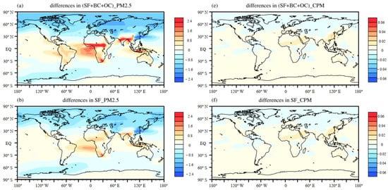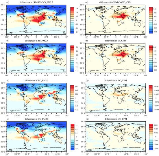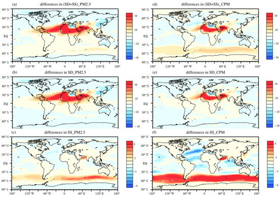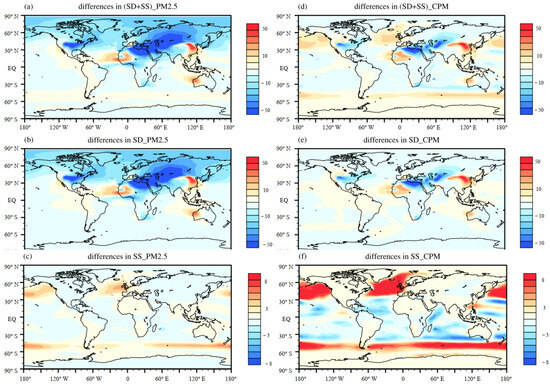 2.5 and CPM burden are also found in some land regions, such as western North Africa, East Asia, and Western Australia, which is also due to increases in SD particles of both fine and coarse modes. Compared with the distributions of changes in SD particles (