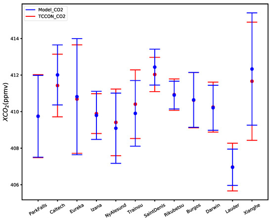 The concentrations of XCO2 were processed with the Gas Fit (GFIT) algorithm, a non-linear least-squares fitting method [18], which involves generating a synthetic spectrum by fine-tuning a priori profiles to achieve the closest match with the observed spectrum. The total column amounts of CO2 were integrated from the adjusted CO2 profile, and the concentrations of XCO2 were divided by the total column amount of dry air [19]. This study used the latest version of the TCCON data (GGG 2020) [20], from all 26 sites in 2019. The detailed information of TCCON sites is listed in Table 1.