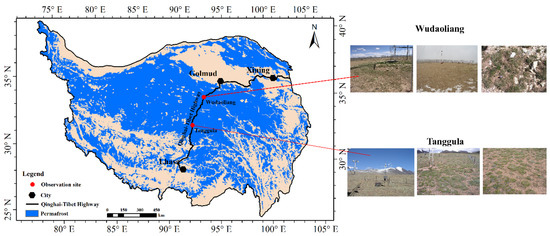- Zhao, L.; Zou, D.; Hu, G.; Wu, T.; Du, E.; Liu, G.; Xiao, Y.; Li, R.; Pang, Q.; Qiao, Y.; et al. A synthesis dataset of permafrost thermal state for the Qinghai-Xizang (Tibet) Plateau, China. Earth Syst. Sci. Data 2021, 13, 4207–4218. [Google Scholar] [CrossRef]