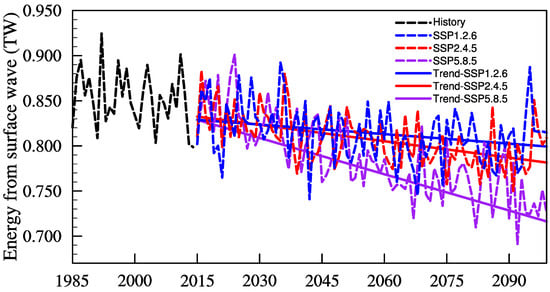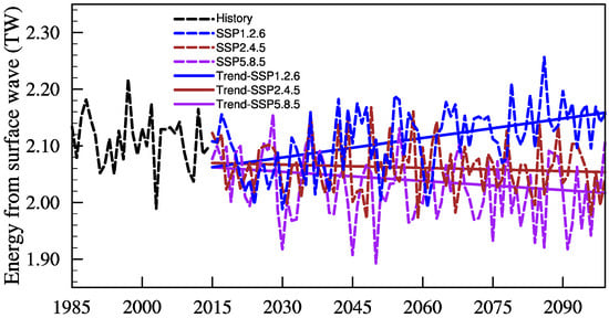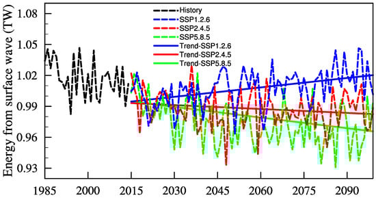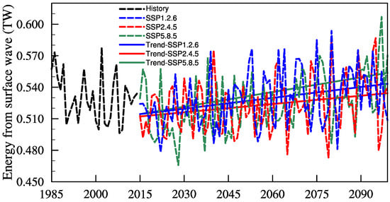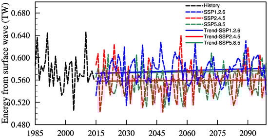 3.3. Low-Frequency Variations and Trends in Energy Input of Wind Stress Direction Surface Waves under Different Scenarios