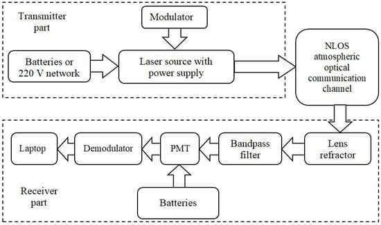 Block diagram of the NLOS wireless optical communication system used.