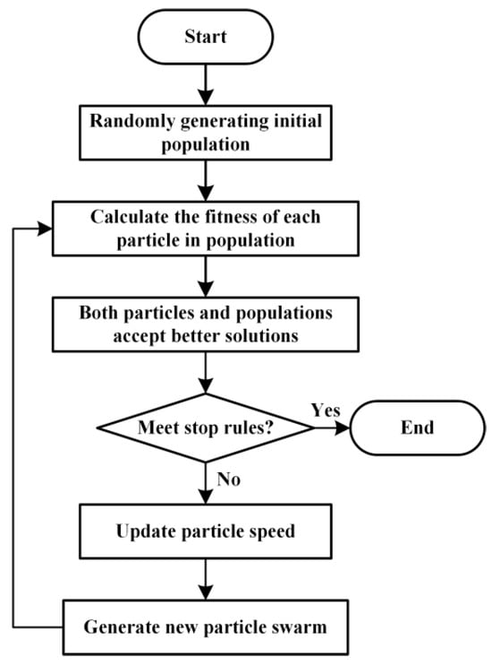 To assess the accuracy of the inversion of atmospheric refractive index profiles using the radio wave propagation models based on the two initial fields, particle swarm optimization (PSO) is employed to determine the atmospheric environment parameters for each model. The inversion path corresponds to measurement path 3. Figure 8 illustrates the flow chart of the particle swarm optimization algorithm, while Table 5 presents the algorithm’s parameters.