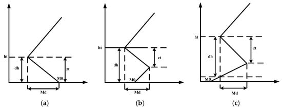 In Figure 9,  is the duct top height in meters;  is the duct thickness in meters;  is the modified surficial refractivity in M units;  is the duct strength in M units, and  is the duct layer thickness in meters. The atmospheric refractive index profile on the day of the experimental test is shown in Figure 4, which conforms to the ground-attached duct (including the base layer) structure in the atmospheric duct structure and is further simplified, as shown in Figure 9b.