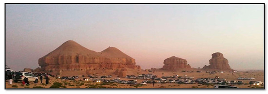 A panoramic view of the Four-mountains site at Al-Hofuf City where observations were made for the eclipse of 26 December 2019, just before sunrise (Photographed by A. Elmhamdi).