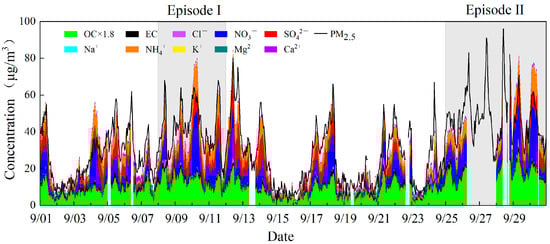 Time series variation of PM2.5 components in Dongying in September 2022.