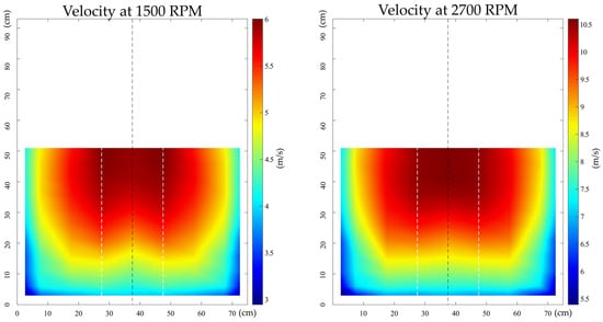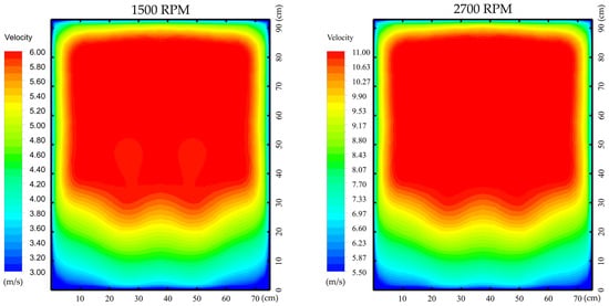 Wind velocity fields measured at fan operating speeds of 1500 and 2700 RPM.