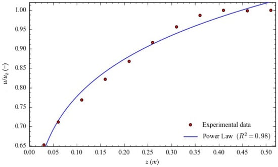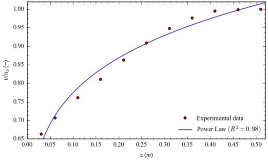 Fitting of the Power Law wind profile to the experimental data at fan-operating velocity of 2700 RPM.