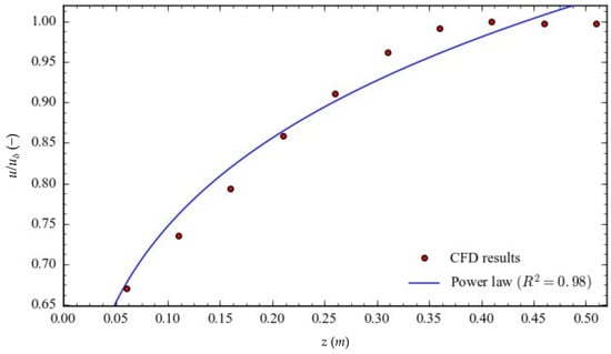 Fitting of the Power Law wind profile to the results of CFD simulations corresponding to a fan operating velocity of 2700 RPM.