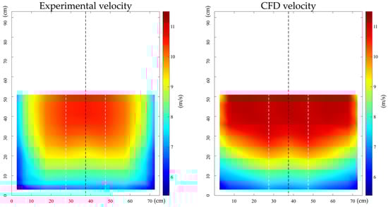 To achieve this purpose, a comparison of the simulated and measured wind profiles is illustrated in Figure 16 (for the fan-operating velocity of 2700 RPM), which leads to the following considerations: