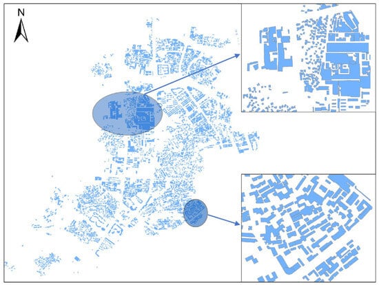 Therefore, it is necessary to simplify the building clusters for modeling the influence of buildings to reduce the time and cost of CFD simulations of the urban wind environment. Ricci [22] assessed the numerical simulation discrepancies resulting from geometric simplification. They conducted wind tunnel tests and CFD simulations with three simplification levels in the Quartiere La Venezia area. The results indicated that the CFD simulations with detailed geometric models were closest to the wind tunnel results. However, the study area was relatively small. Thus, the computational efficiency was not improved significantly. Guo [23] expanded their study area to an entire campus building, and in order to improve the computational efficiency, they simplified the buildings by adjusting different parameters. However, this scheme is only suitable for cuboid buildings, and the effect is not good for more complex and large buildings. In order to enable CFD to be applied to a wider range of research areas, Li [24] used a geographic information system (GIS) to merge and generalize the building clusters in two dimensions and performed a CFD wind environment simulation for Jinjiang City. Subsequently, they generated three-dimensional models from the simplified representations. The results showed a significant improvement in CFD computational efficiency after the generalization, with a good correlation between the simulated and measured wind speeds. Back presented a 2.5D method integrating CFD and a GIS for fine-scale studies of urban environments. This approach enabled more comprehensive evaluations of urban heat islands and human thermal comfort, contributing to the sustainable development of resilient cities [6]. GISs have a unique advantage for researching urban building cluster wind environments. The spatial analysis functions efficiently process two-dimensional graphics, attribute analysis provides valuable floor-level statistics, graphic aggregation enables merging structures, and polygon simplification streamlines topological complexities [25,26,27].