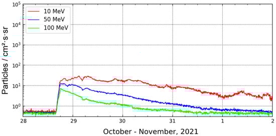 Fluxes of protons of different energies on 28 October–1 November 2021.