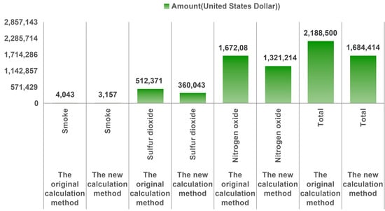 In conclusion, this study meticulously estimated the environmental economic losses associated with excessive air pollution emissions by adopting the new quantitative method in conjunction with national standards. These findings not only validate the new method’s effectiveness but also underscore the importance of continuous optimization of pollution control technologies and strategies to mitigate the adverse environmental impacts of industrial activities.