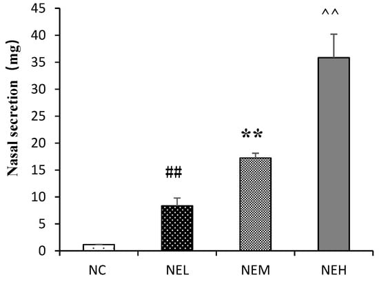 3.1. Effect of Ozone on Nasal Secretion in Rats