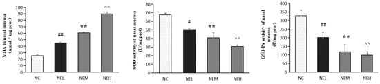3.2. Effects of Ozone on Oxidative Stress in Rat Nasal Mucosa