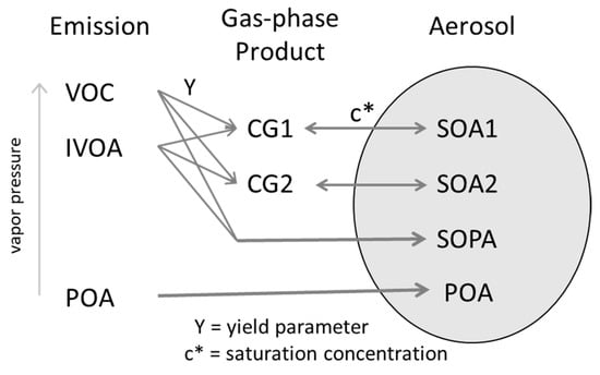 - Organic oxidation chemistry and gas-particle partitioning are determined using an updated two-product equilibrium scheme called SOAP [] or a hybrid 1.5-dimension volatility basis set (VBS) approach [].