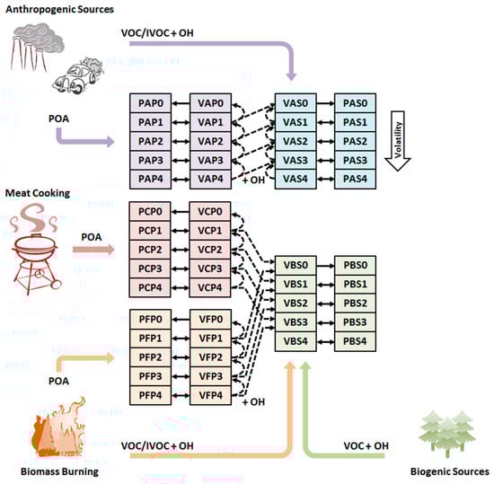 - Donahue, N.M.; Robinson, A.L.; Stanier, C.O.; Pandis, S.N. Coupled partitioning, dilution, and chemical aging of semivolatile organics. Environ. Sci. Technol. 2006, 40, 2635–2643. [Google Scholar] [CrossRef]