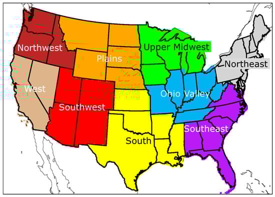 - Karl, T.R.; Koss, W.J. Regional and National Monthly, Seasonal, and Annual Temperature Weighted by Area, 1895–1983; Historical Climatology Series 4-3; National Climatic Data Center: Asheville, NC, USA, 1984; 38p. [Google Scholar]