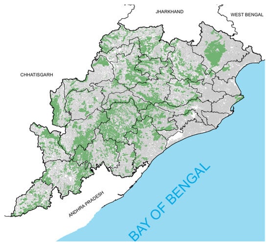 The forest map of the state of Odisha (reproduced from https://www.gisodisha.nic.in/Statem/Forest.pdf, last accessed on 26 May 2024).