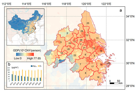 - An, M.; Fan, M.; Xie, P. Synergistic relationship and interact driving factors of pollution and carbon reduction in the Yangtze River Delta urban agglomeration, China. Environ. Sci. Pollut. Res. 2023, 30, 118677–118692. [Google Scholar] [CrossRef]