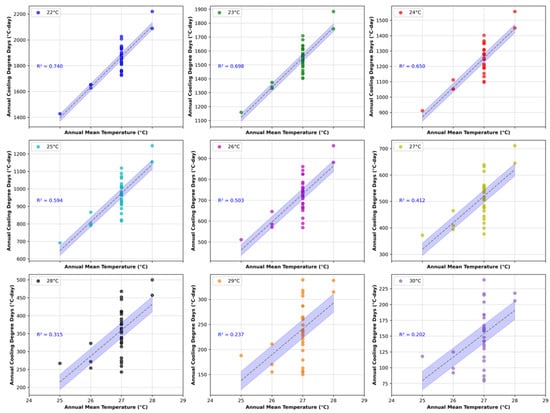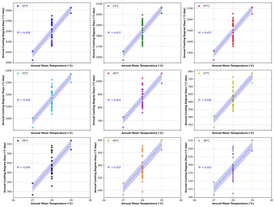 - Miranda, N.D.; Lizana, J.; Sparrow, S.N.; Zachau-Walker, M.; Watson, P.A.; Wallom, D.C.; Khosla, R.; McCulloch, M. Change in cooling degree days with global mean temperature rise increasing from 1.5 °C to 2.0 °C. Nat. Sustain. 2023, 6, 1326–1330. [Google Scholar] [CrossRef]